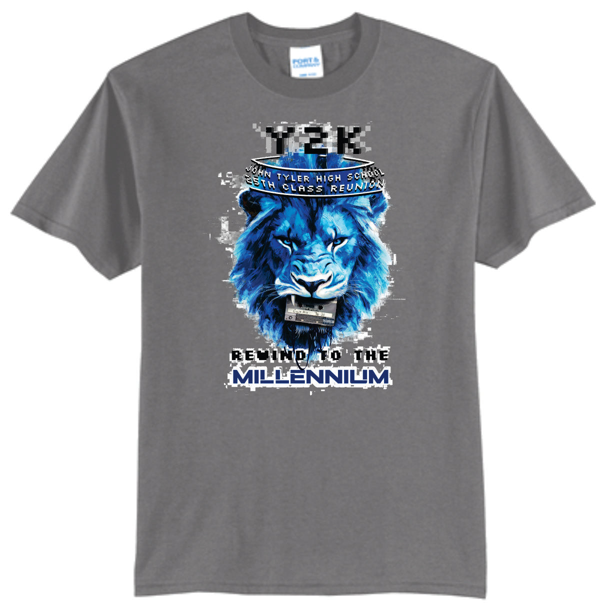 Celebrate your 25th Class Reunion with our Class of 2000 Reunion Shirt, featuring a stylish "Rewind to the Millennium" design. Made with a comfortable 50/50 cotton-poly blend this shirt comes in sizes small to 6x, this shirt proudly displays your alma mater, John Tyler High School. Relive the memories in style.
